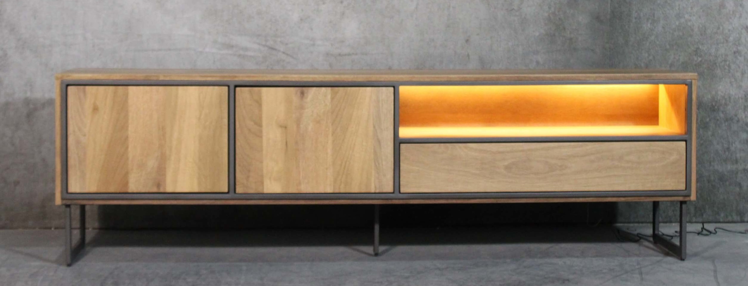 TV-Anrichte Mangoholzfurnier smoked/Metall anthrazit mit Beleuchtung